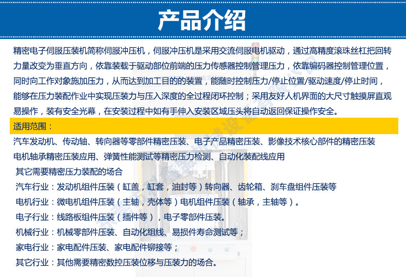 其它行业:其他需要精密数控压装位移与压装力的场合。